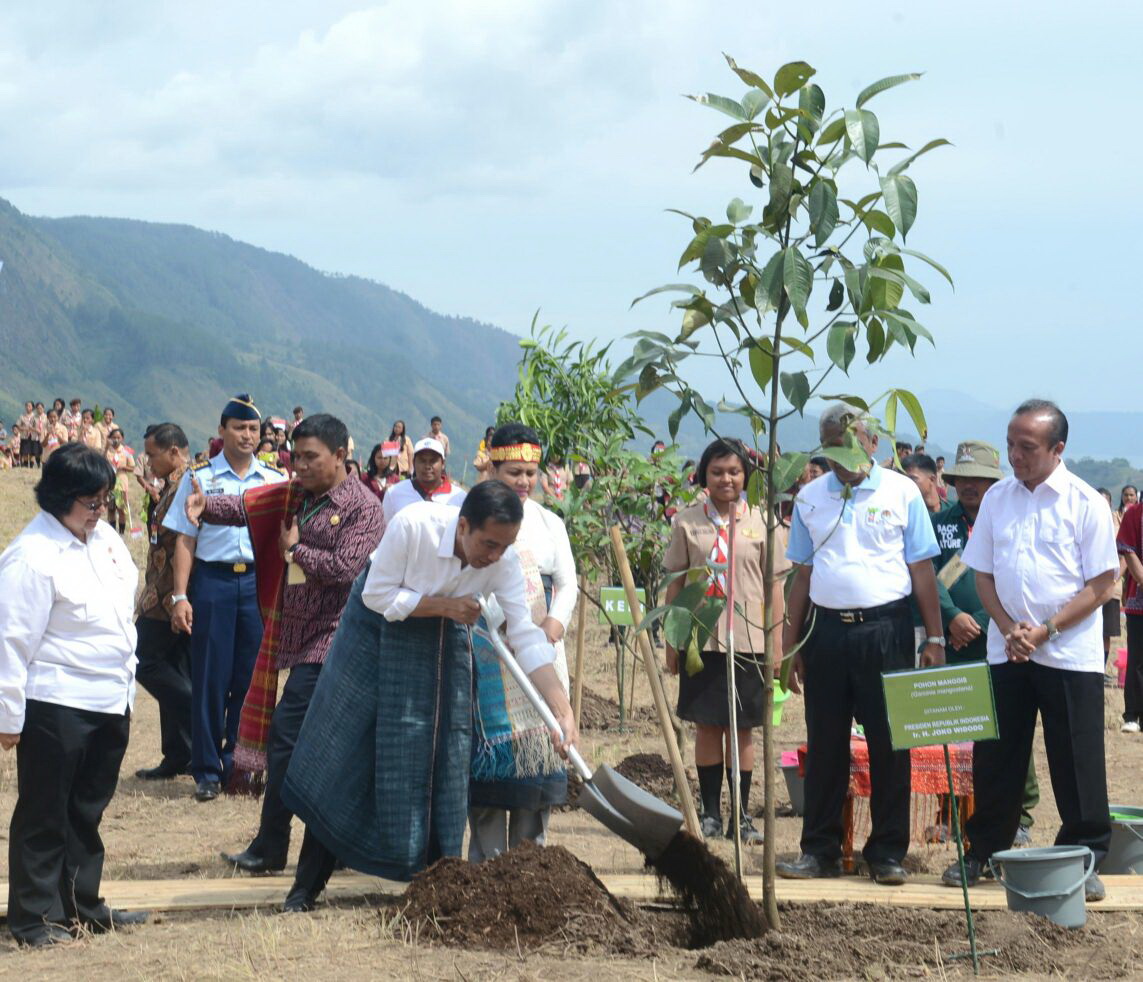 Presiden Joko Widodo bersama masyarakat menanam 2500 pohon di Kecamatan Porsea, Toba Samosir. FOTO : SETPRES/KRIS
