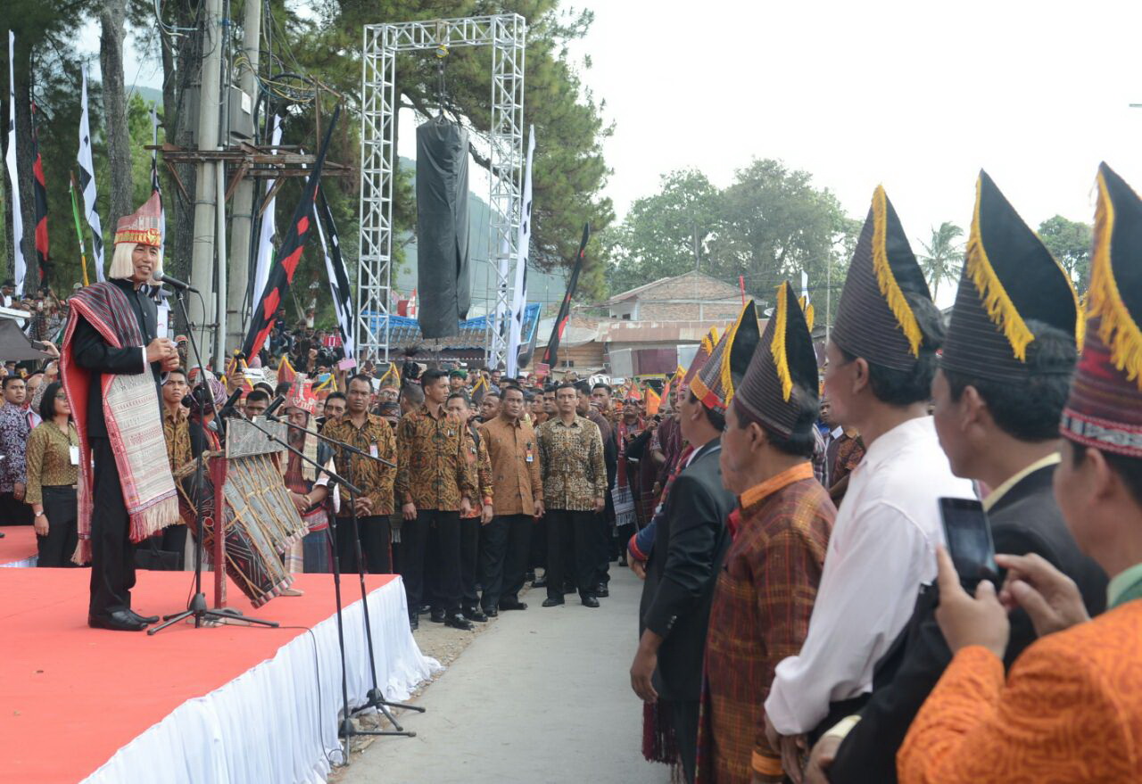 Penyambutan Presiden Joko Widodo dan rombongan oleh masyarakat Samosir, Sumatera Utara, 21 Agustus 2016. FOTO : SETPRES/KRIS