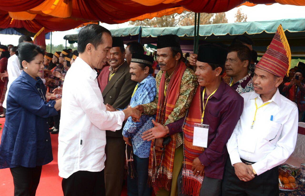 Presiden Joko Widodo dan Ibu Negara Iriana Jokowi disambut masyarakat Samosir, Sumatera Utara, 21 Agustus 2016. FOTO : SETPRES/KRIS