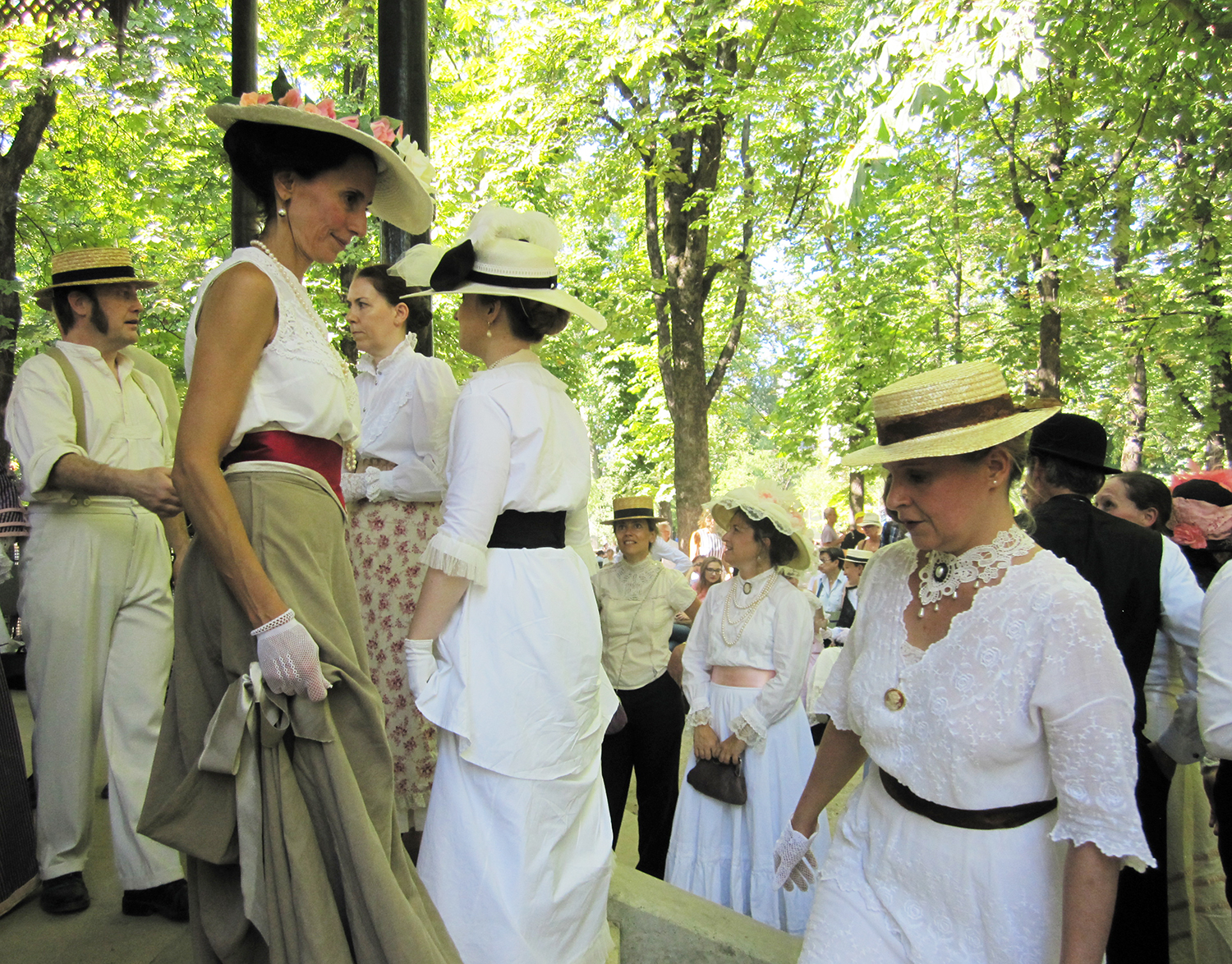 Awalnya, tak menyangka juga akan bertemu dengan pagelaran unik seperti ini di tengah taman. Namun, musik waltz yang mengalun, dan juga para penari yang berada di atas panggung, memang menjadi tontonan favorit bagi para pengunjung taman. Apalagi baju-baju mereka yang klasik, benar-benar membawa kita seperti berada di era zaman Renaissance. Dan bukan hanya para pemuda atau pemudi yang menari, tetapi juga para penari yang lanjut usia, mereka tetap terlihat lincah di atas panggung dengan pakaian mereka yang rapi dan klasik.
