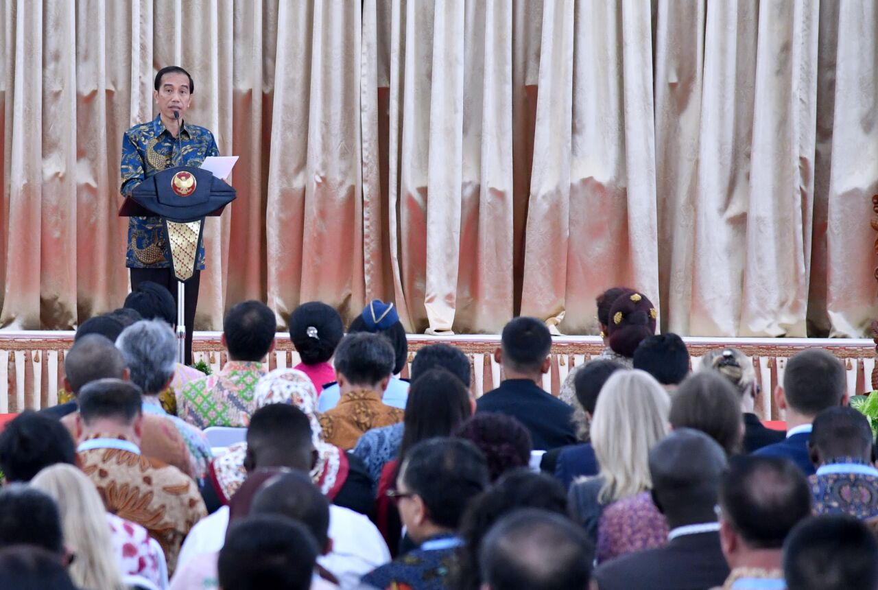 Presiden Joko Widodo membuka simposium kejahatan perikanan internasional kedua yang dihadiri oleh perwakilan dari 46 negara di Istana Kepresidenan Yogyakarta. FOTO : SETPRES/LAILY