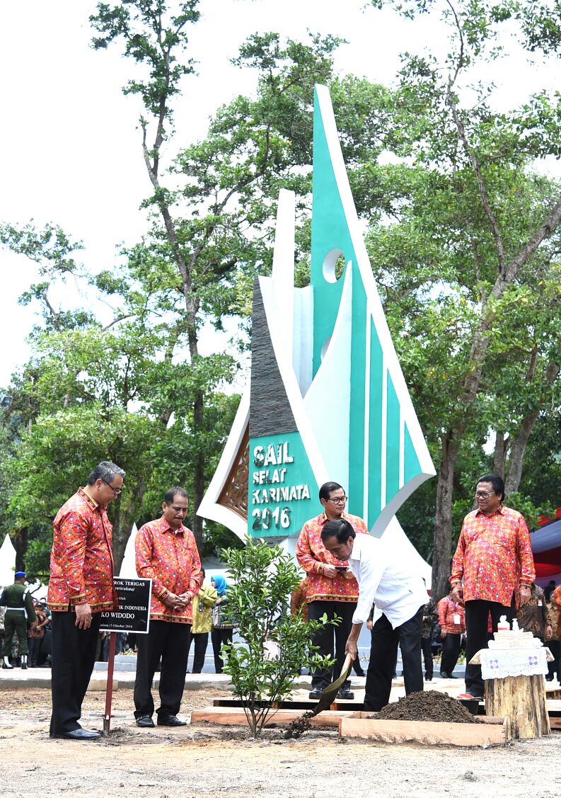 (Vibizmedia – Nasional) Presiden Joko Widodo melakukan pembukaan acara puncak Sail Selat Karimata 2016 pada Sabtu pagi, 15 Oktober 2016 di Pelataran Pantai Pulau Datok, Desa Sutera, Kecamatan Sukadana, Kabupaten Kayong Utara, Provinsi Kalimantan Barat.