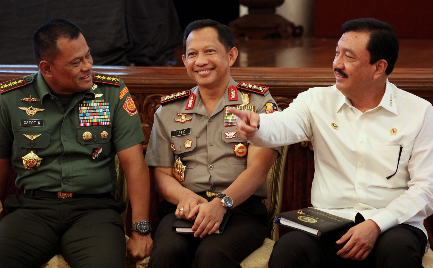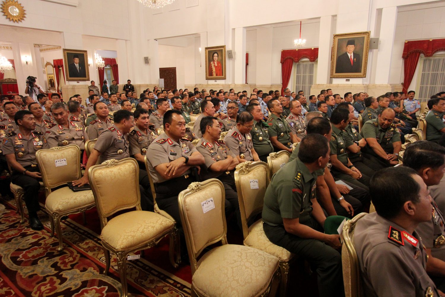 Home Photo Gallery National Photos Presiden Instruksikan Operasi Pemberantasan Pungli di Berbagai Layanan Masyarakat Presiden Joko Widodo memberikan instruksi kepada TNI dan Polri dalam rapat koordinasi bersama Pangdam dan Kapolda di Istana Negara dalam memberantas pungli dan mengamankan persiapan Pilkada 2017. FOTO : VIBIZMEDIA.COM/RULLY Photo GalleryNational Photos Presiden Instruksikan Operasi Pemberantasan Pungli di Berbagai Layanan Masyarakat By Maruli Sinambela - Oct 24, 2016 0 1090 Facebook Twitter WhatsApp Telegram 1 of 3 Rapat koordinasi Pangdam dan Kapolda di Istana Negara dihadiri Panglima TNI, Kapolri dan Kepala Bin. FOTO : VIBIZMEDIA.COM/RULLY Rapat koordinasi Pangdam dan Kapolda di Istana Negara. FOTO : VIBIZMEDIA.COM/RULLY Presiden Joko Widodo bersama Wakil Presiden Jusuf Kalla. FOTO : VIBIZMEDIA.COM/RULLY RELATED ARTICLESMORE FROM AUTHOR Lensa Jakarta: Suasana Hangat dan Khidmat Peringatan HUT ke 74 Kemerdekaan RI Presiden Joko Widodo Beri Pengarahan 600 Direksi BUMN Peserta Pelatihan Eksekutif Executive Leadership Program Direksi BUMN Presiden Ikut Lomba dan Memotivasi Atlet Panahan Untuk Berprestasi Pantai Melasti, Lokasi Wisata Baru di Desa Ungasan Bali LEAVE A REPLY Cancel reply Please enter your comment! Please enter your name here You have entered an incorrect email address! Please enter your email address here Save my name, email, and website in this browser for the next time I comment. Δ