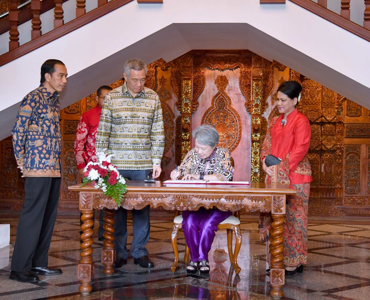 Istri Perdana Menteri Singapura Lee Hsien Loong mengisi buku tamu negara di Wisma Perdamaian, Semarang, Jawa Tengah. FOTO : SETPRES/LAILY