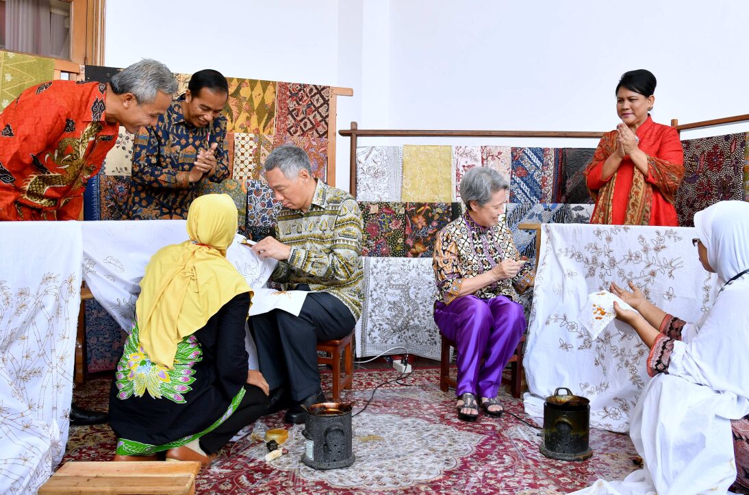 Perdana Menteri Singapura Lee Hsien Loong dan istri belajar membatik bersama di Wisma Perdamaian, Semarang, Jawa Tengah. FOTO : SETPRES/LAILY