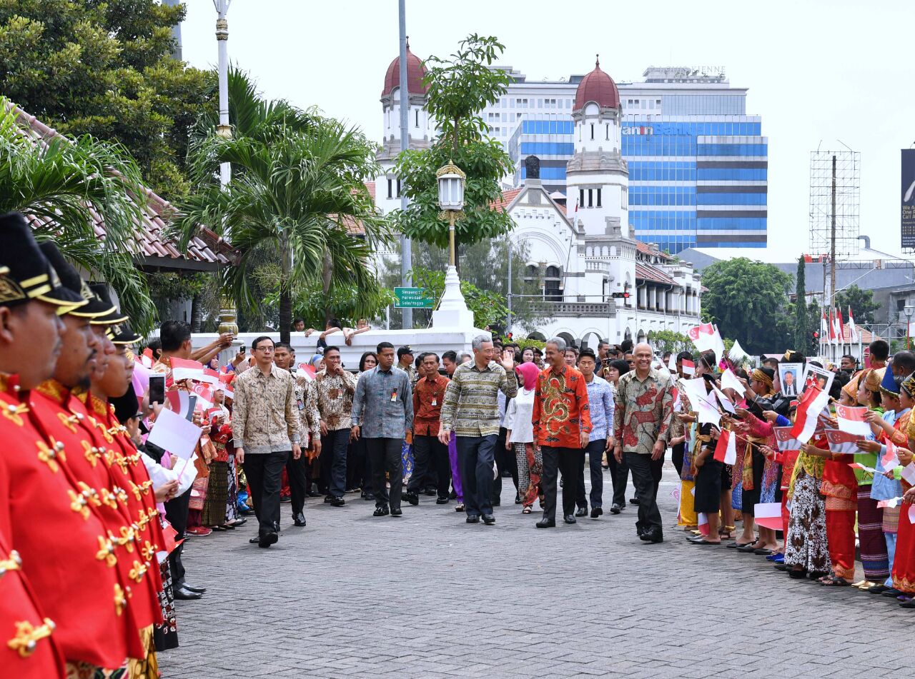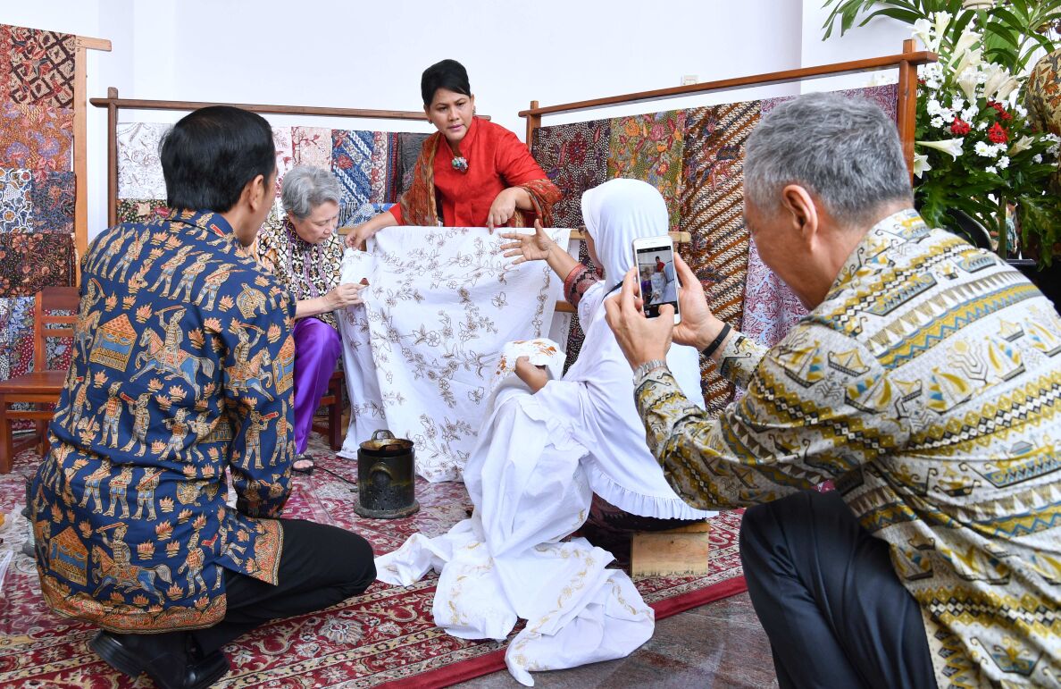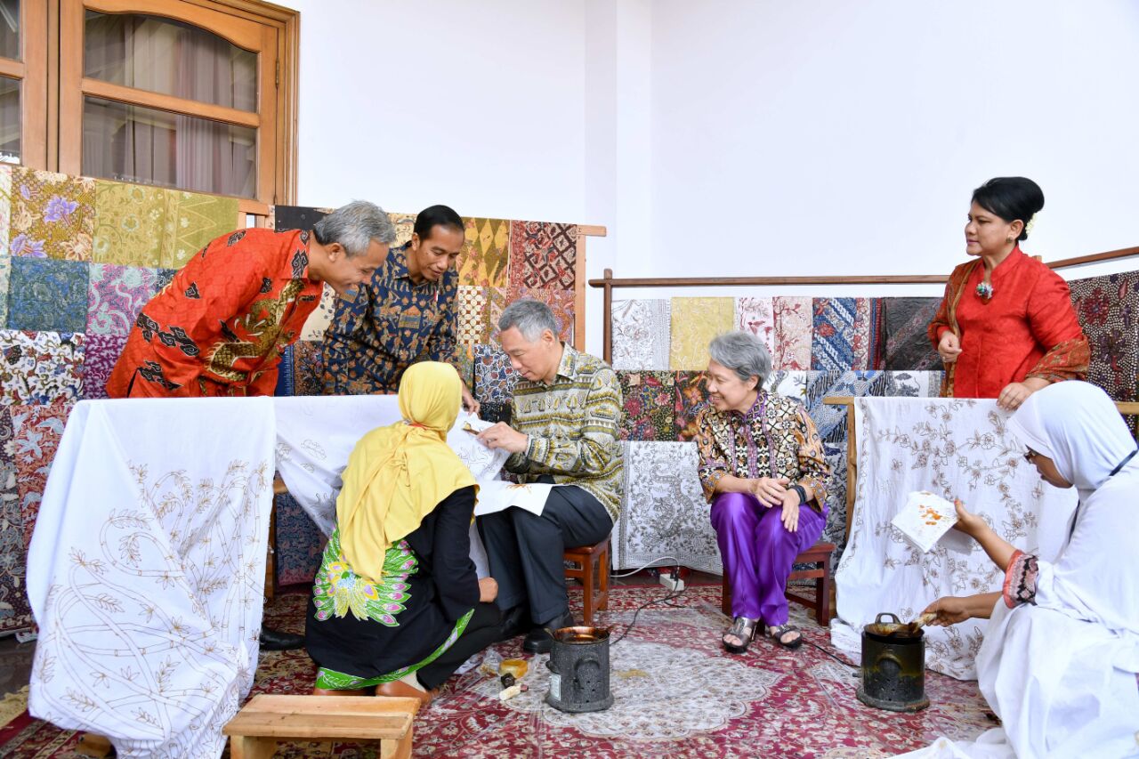Perdana Menteri Singapura Lee Hsien Loong dan istri belajar membatik bersama di Wisma Perdamaian, Semarang, Jawa Tengah. FOTO : SETPRES/LAILY