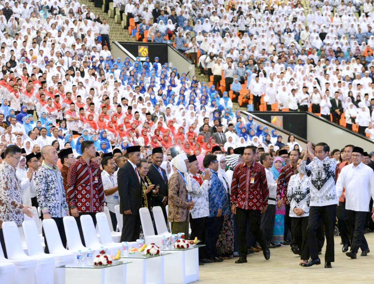 Presiden sampaikan bahwa kita semua ini adalah saudara, NKRI, Negara Kesatuan Republik Indonesia. Agar bangsa kita tetap satu NKRI dalam keadaan dan situasi apapun, ungkapnya dihadapan sekitar 16.500 guru yang berasal dari berbagai organisasi guru, seperti Persatuan Guru Republik Indonesia (PGRI), Persatuan Guru Nahdlatul Ulama (PERGUNU), Persatuan Guru Madrasah Indonesia (PGMI), Federasi Guru Independen Indonesia (FGII), Federasi Serikat Guru Indonesia (FSGI), Ikatan Guru Indonesia, Persatuan Guru Seluruh Indonesia (PGSI), Himpunan Pendidikan Anak Usia Dini Indonesia (Himpaudi), Forum Guru Muhammadiyah, Persatuan Guru Sejahtera dan JSIT Indonesia, Ikatan Guru Madrasah, Ikatan Guru Raudlatul Athfal, Asosiasi Kepala Sekolah Indonesia, Asosiasi Pengawas Sekolah Indonesia dan Musyawarah Guru Bimbingan dan Konseling Nasional (MGBK Nasional).