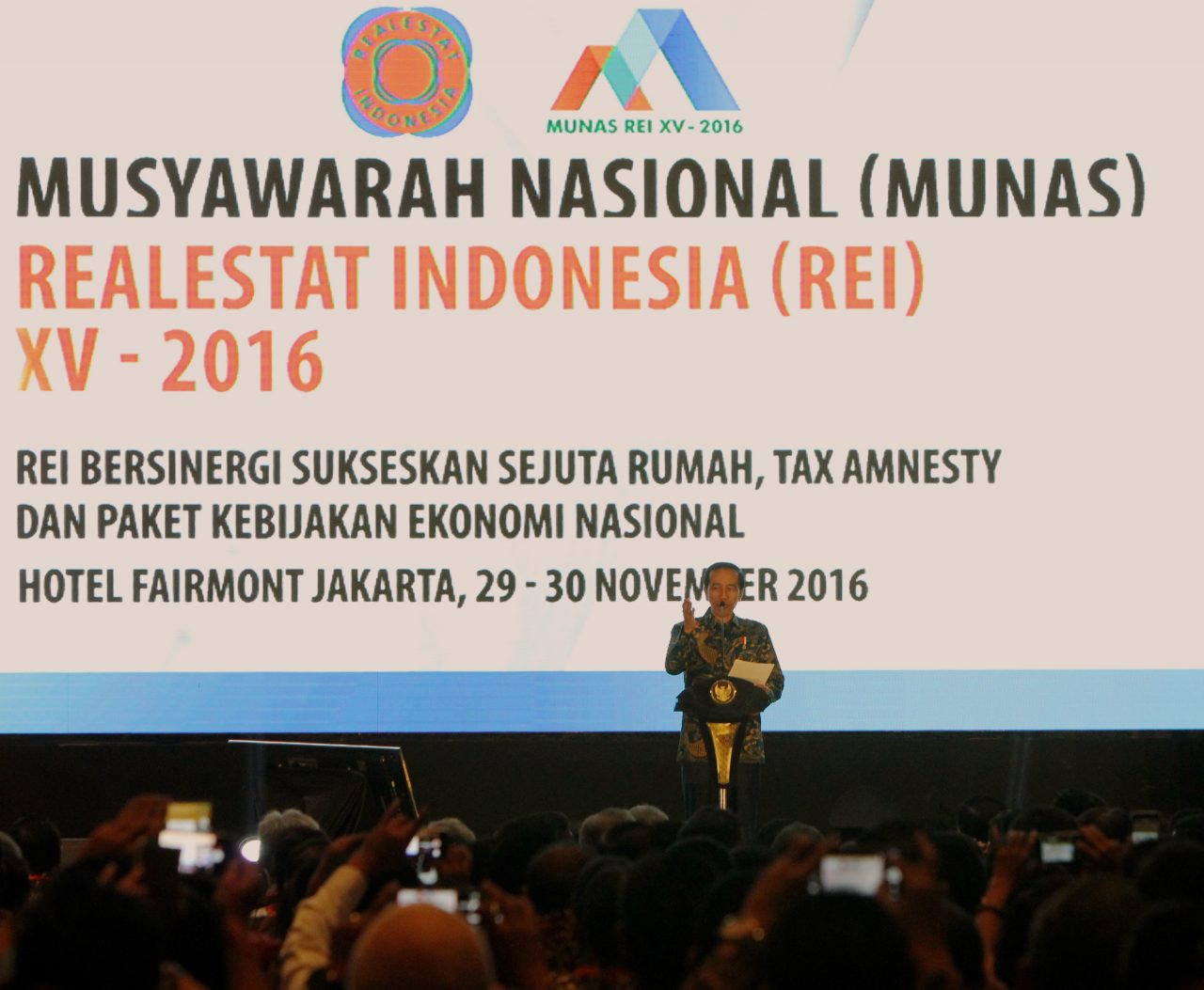 Presiden Joko Widodo membuka Musyawarah Nasional Persatuan Perusahaan Realestat Indonesia di Grand Ballroom, Hotel Fairmont, Jakarta, Selasa 29 November 2016. FOTO : VIBIZMEDIA.COM/RULLY