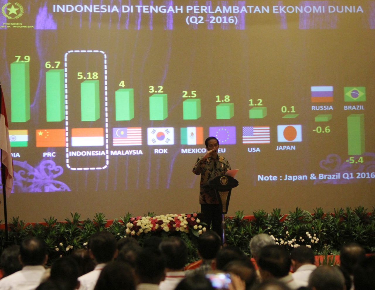 Meskipun di atas kertas pertumbuhan ekonomi Indonesia masih di belakang India dan Tiongkok, Presiden meyakini bahwa pertumbuhan ekonomi Indonesia masih lebih konkret dibanding keduanya. Sebab, selain pertumbuhan ekonomi yang membaik, angka kemiskinan dan pengangguran juga semakin menurun.