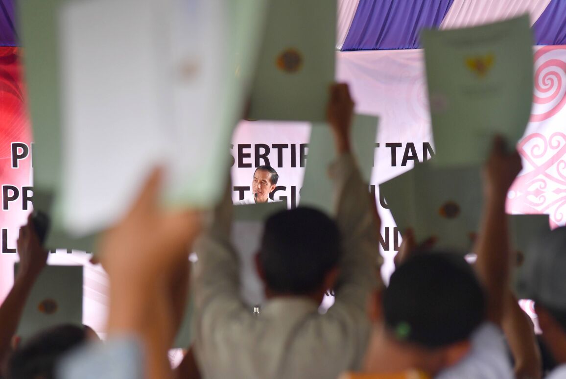 Penyerahan sertifikat tanah program strategis tahun 2016 di Kalimantan Barat. FOTO : BIRO PERS SETPRES