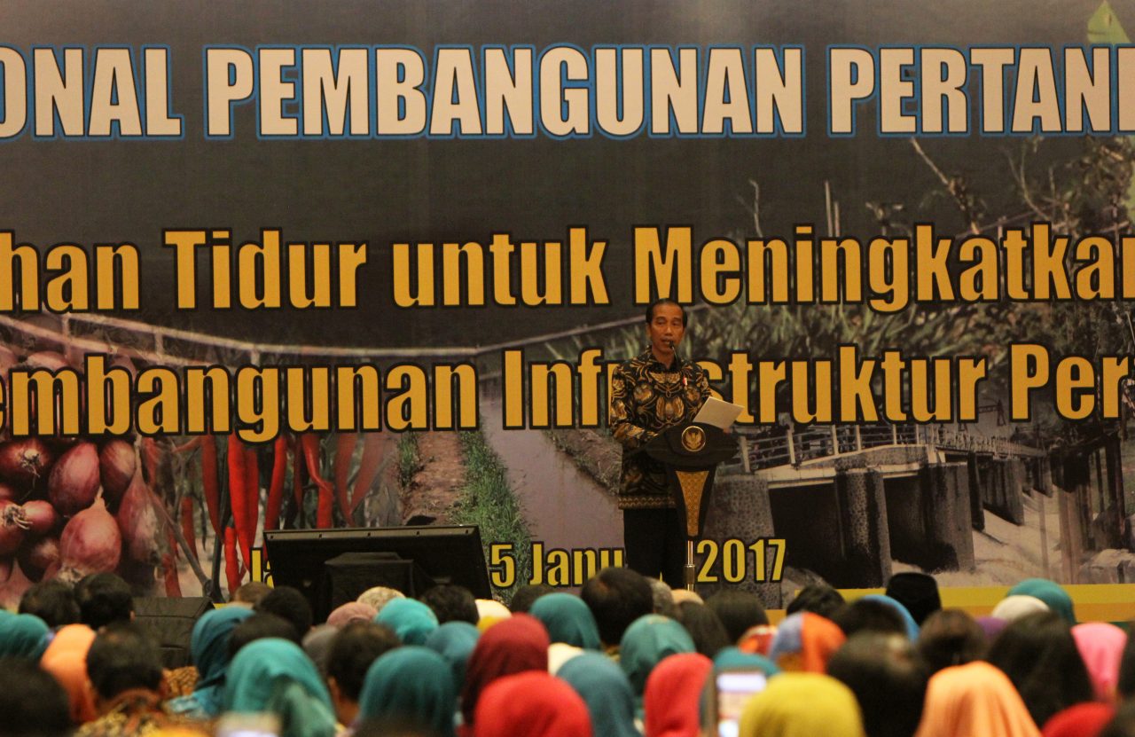 Dalam rapat kerja nasional (Rakernas) Pembangunan Pertanian di Hotel Bidakara, Jakarta Selatan, Kamis (5/1), Presiden Joko Widodo mengatakan pembangunan sektor pertanian merupakan pintu masuk untuk mengatasi masalah kemiskinan yang sudah menjadi masalah negara selama bertahun-tahun dan juga menekan ketimpangan.