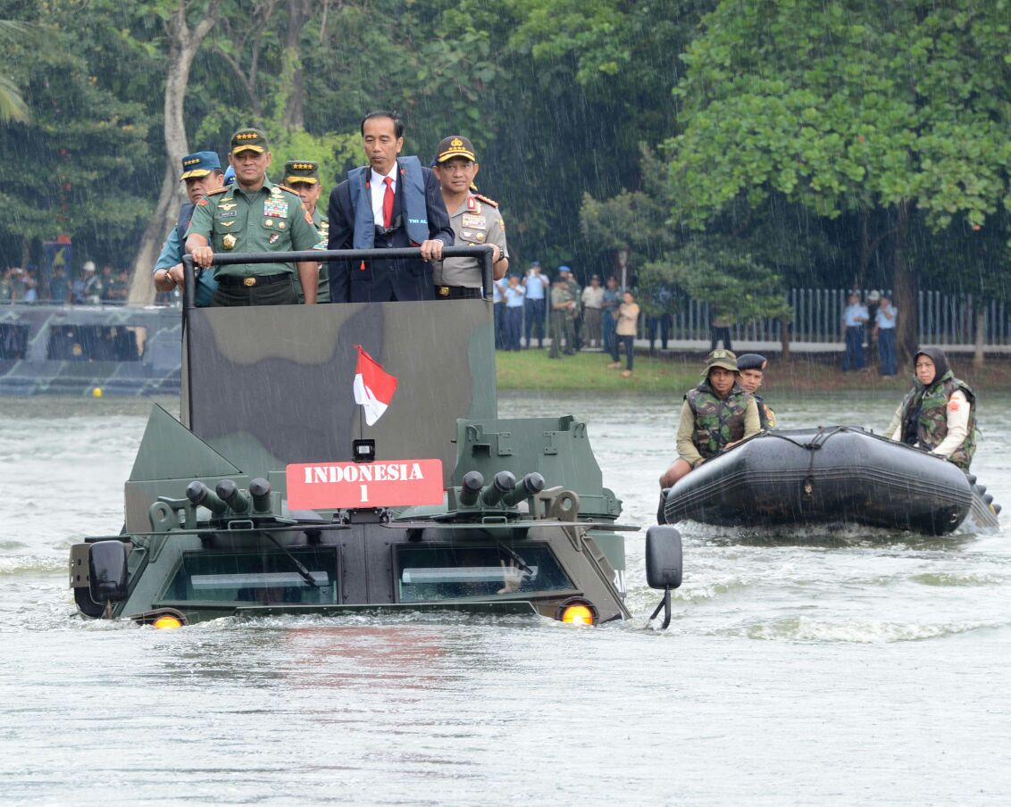 Presiden sempat memuji kualitas Panser Anoa Amphibi buatan lokal tersebut. Sambil berkelakar, Kepala Negara mengaku berdebar saat Panser Anoa berjalan melintasi danau.