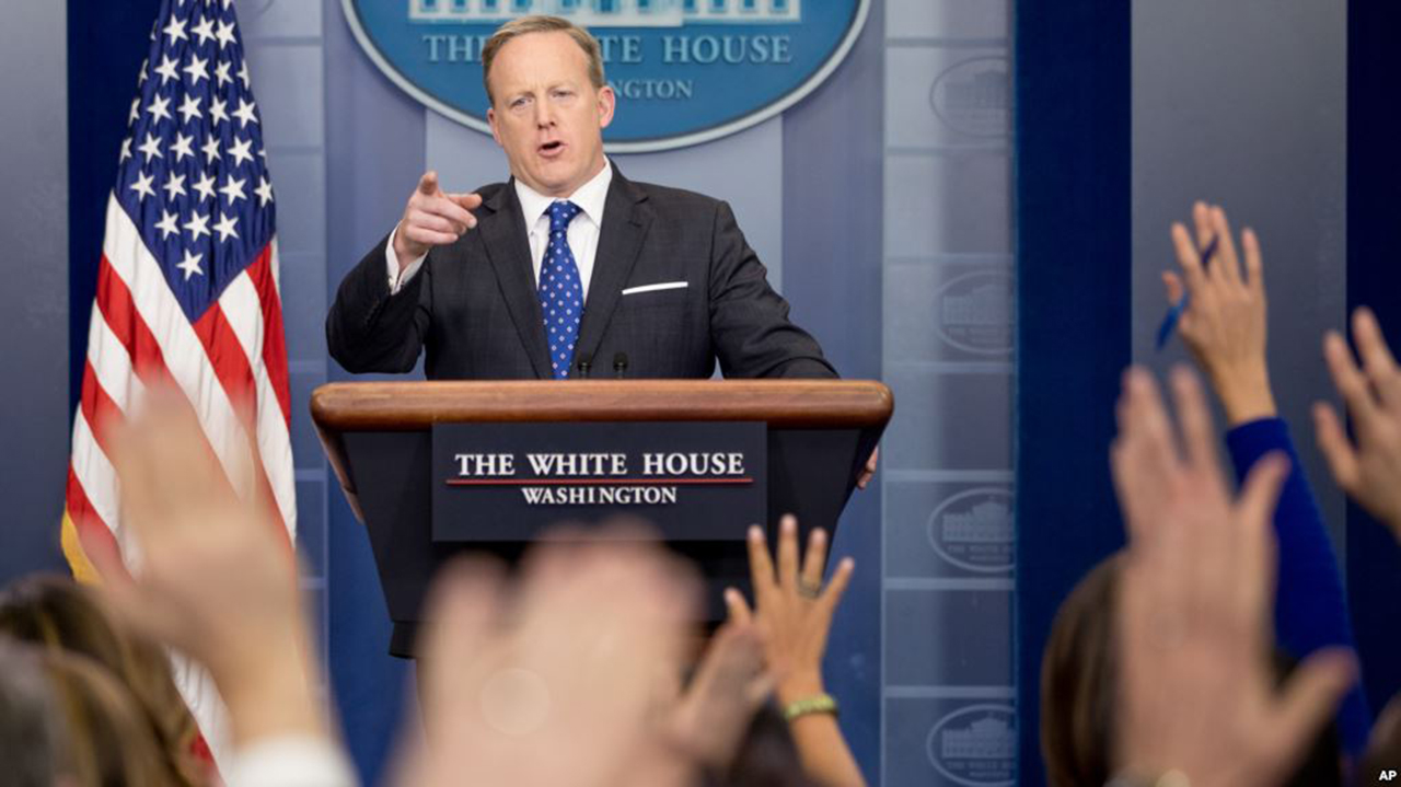 Ketika memberikan keterangan pers harian, jurubicara Sean Spicer mengatakan kepada wartawan bahwa Presiden Trump “punya penghormatan yang mendalam pada Amendemen Pertama dan pada peran pers,” tapi tambahnya, “prinsip ini harus berlaku timbal-balik.”