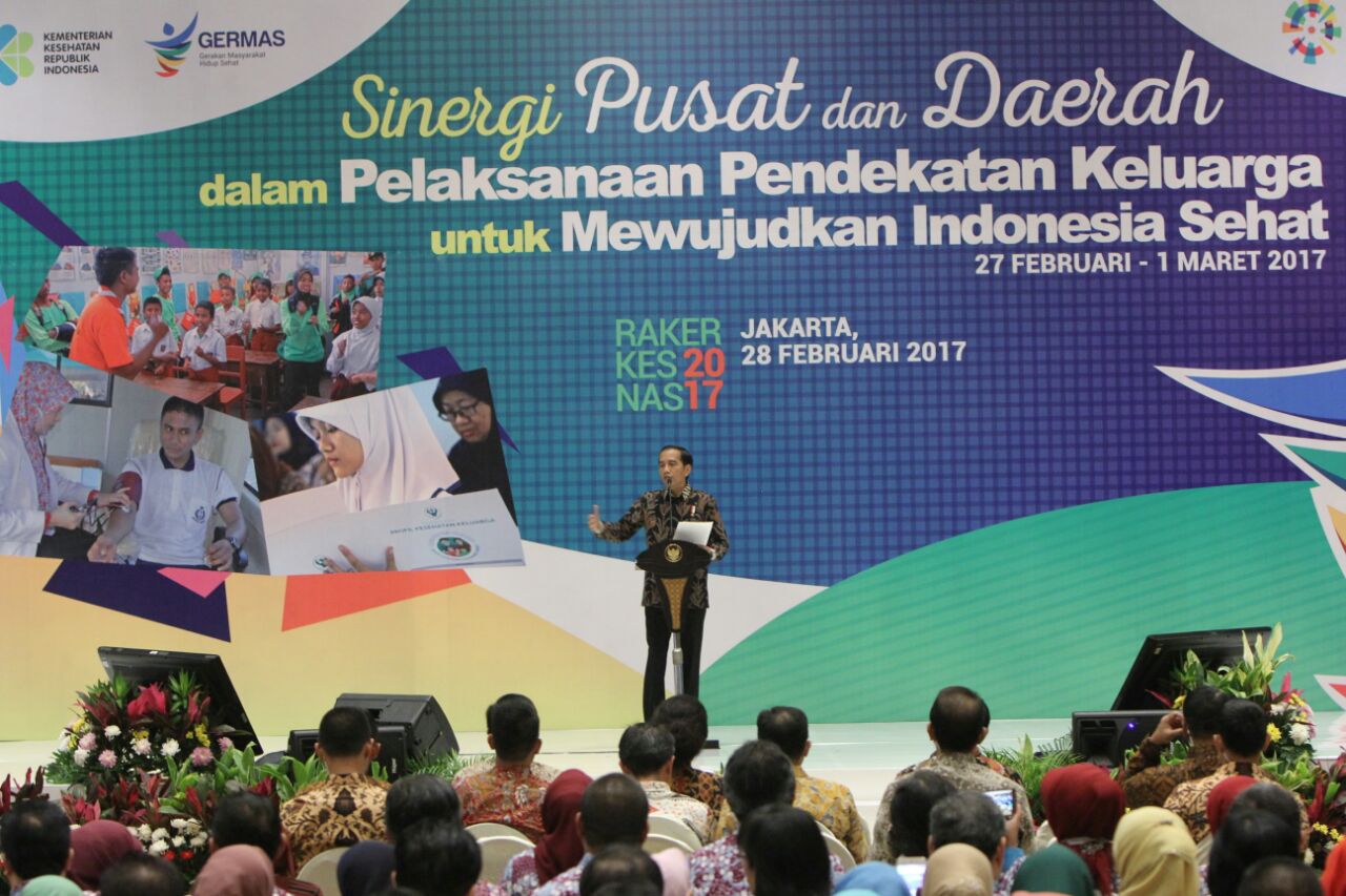 (Vibizmedia – Nasional) Dalam rapat kerja pengurus nasional (Rakernas) Kementerian Kesehatan 2017 di Hotel Bidakara, Selasa (28/2). Presiden Joko Widodo menghimbau para dokter, bidan dan penyuluh kesehatan tidak berbangga hati jika masih menangani pasien dalam jumlah banyak.