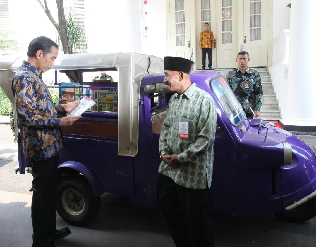 Upaya para pegiat literasi dengan cara menyampaikan buku-buku bacaan melalui perahu, kuda, jualan jamu dan bemo tersebut mendapatkan apresiasi dari Presiden Joko Widodo.