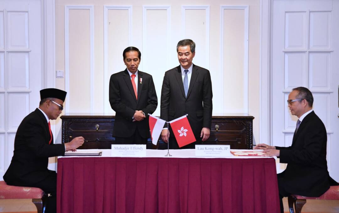 Penandatanganan nota kesepahaman bersama tersebut mengenai kerja sama di bidang ketenagakerjaan antara Menteri Luar Negeri Retno Marsudi dan Secretary Labor Hong Kong, dan penandatanganan nota kesepahaman di bidang kebudayaan antara Menteri Pendidikan dan Kebudayaan Muhadjir Effendy dan Secretary for Home Affairs Hong Kong.