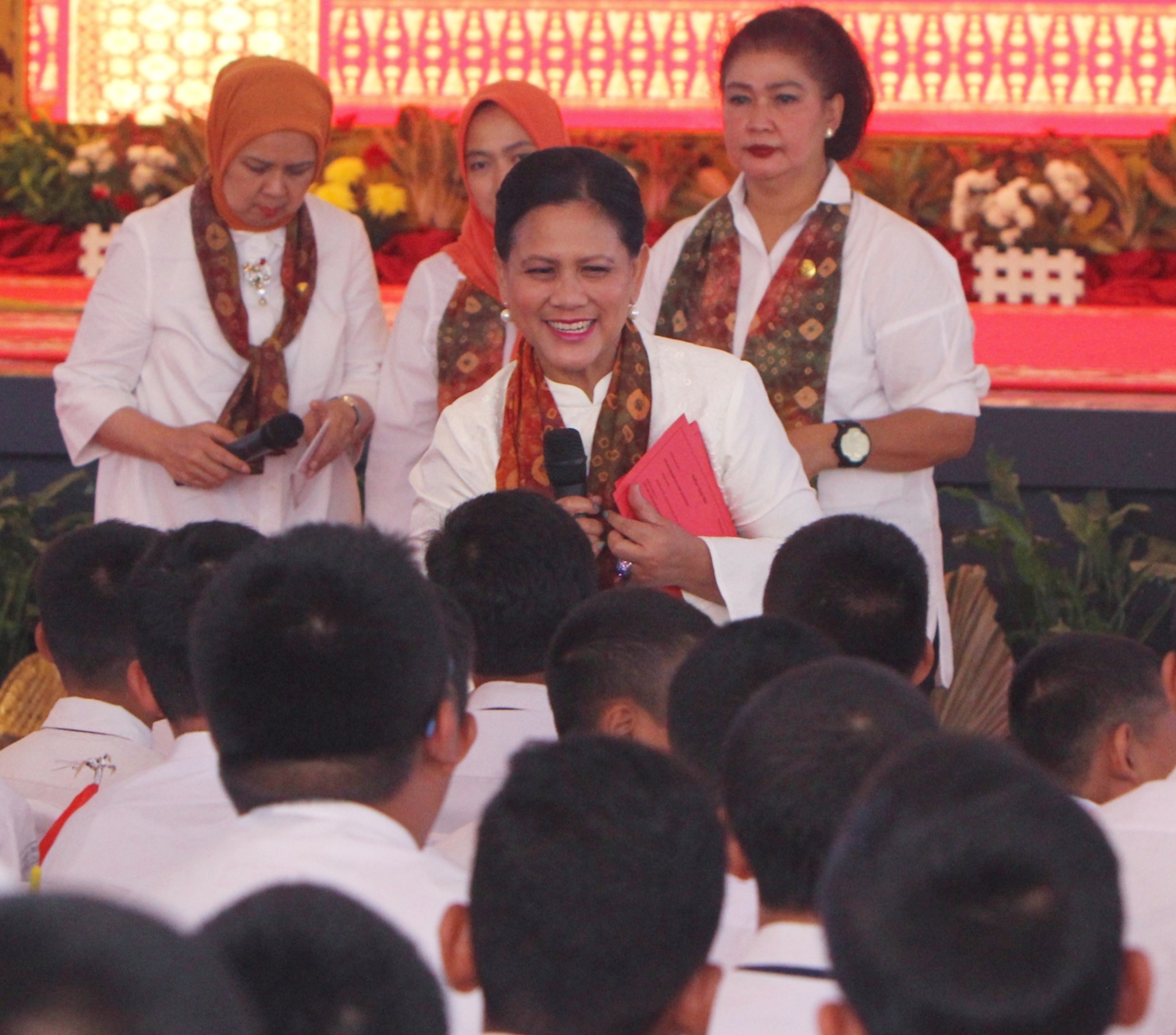 Bertempat di Pendopo Griya Agung, Kota Palembang, Ibu Negara bersama para istri menteri yang tergabung dalam Organisasi Aksi Solidaritas Era Kabinet Kerja (OASE KK), berdialog dengan para pelajar.