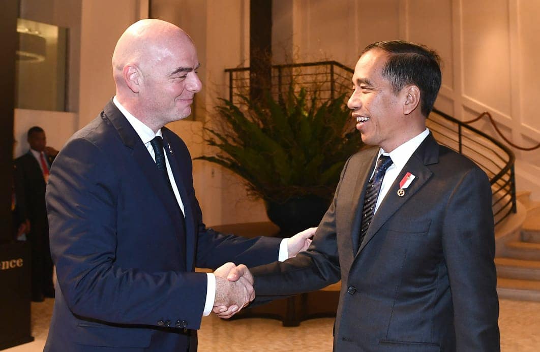 (Vibizmedia-Nasional) Presiden Joko Widodo mengadakan pertemuan bilateral dengan Presiden FIFA Gianni Infantino di The Boardroom Hotel Grand Hyatt Erawan, Bangkok, Thailand, pada Sabtu (2/11).