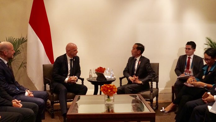 (Vibizmedia – Nasional) Presiden Joko Widodo (Jokowi) didampingi beberapa menteri Kabinet Indonesia Maju melakukan pertemuan bilateral dengan Presiden Sepakbola Dunia atau International Federation of Football Association (FIFA), Gianni Infantino, di Hotel Grand Hyatt Erawan, Bangkok, Thailand, Sabtu (2/11) sore.
