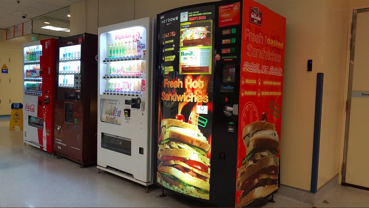 Rumah Sakit ini juga memiliki fasilitas vending machine dalam setiap ruang tunggu dan vending machine di mana-mana yang memudahkan pengunjung, penjaga orang sakit mendapatkan minum dan makanan. Ruang tunggu pun nyaman untuk berlama-lama disana.