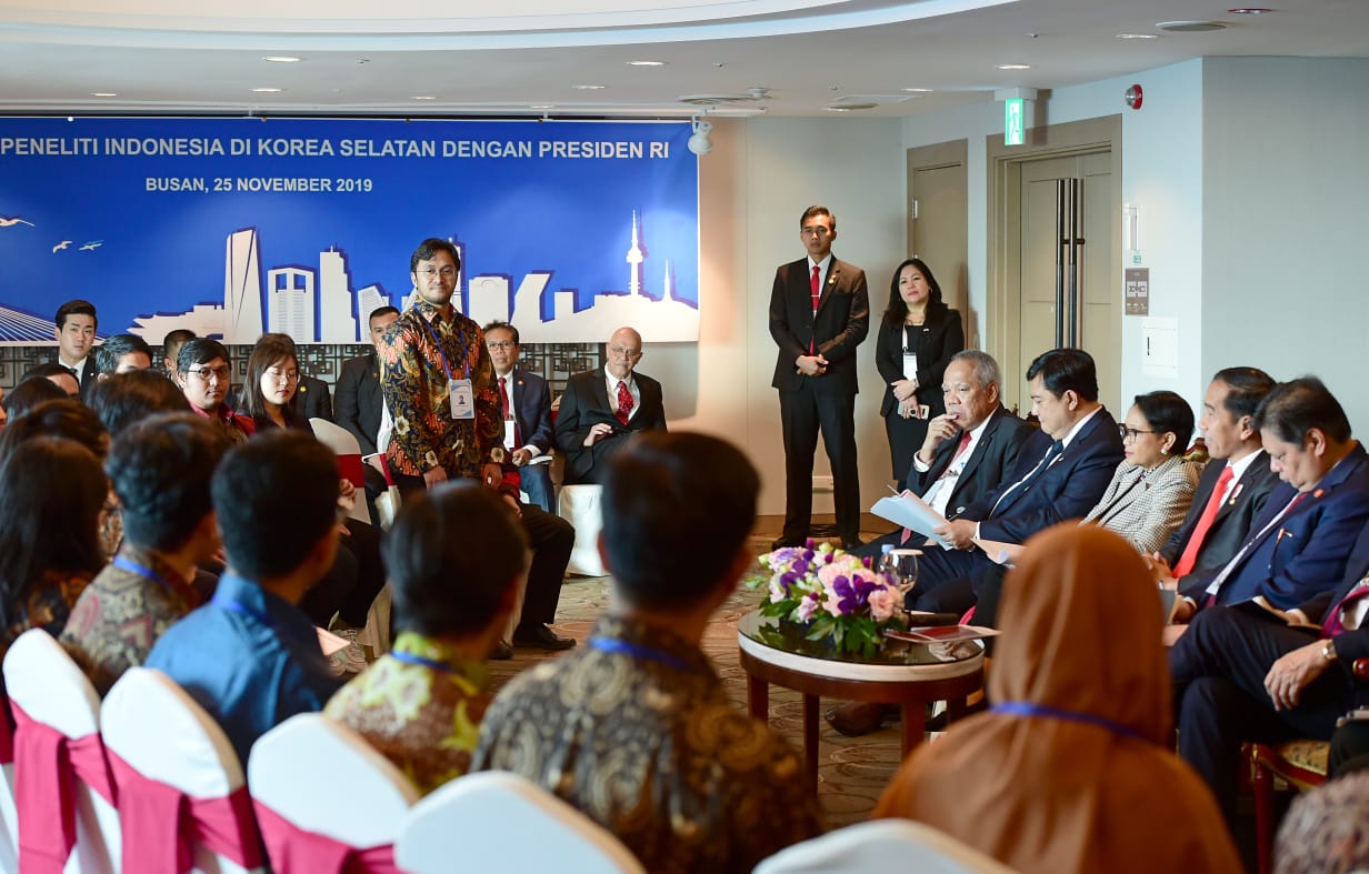 Dalam pertemuan yang digelar di Hotel Lotte, Busan, Korea Selatan, pada Senin (25/11), Presiden Jokowi mengatakan sekarang di sini dulu enggak apa-apa, melihat, mengamati, kemudian pada titik tertentu memang nantinya semuanya harus kembali membangun negara kita.