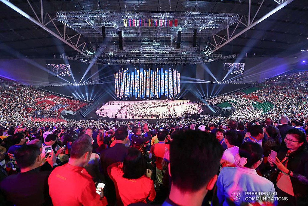 Di Kompleks Olahraga Internasional Clark, wartawan AFP menyaksikan panggung penonton yang kosong dan tenda-tenda yang sudah dibongkar di lokasi laga softball dan baseball saat hujan lebat mengguyur. Di lokasi laga petanque atau permainan tradisional asal Perancis, beberapa bendera nasional diterbangkan angin kencang.