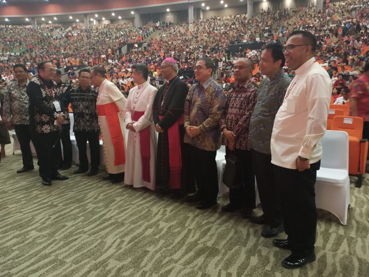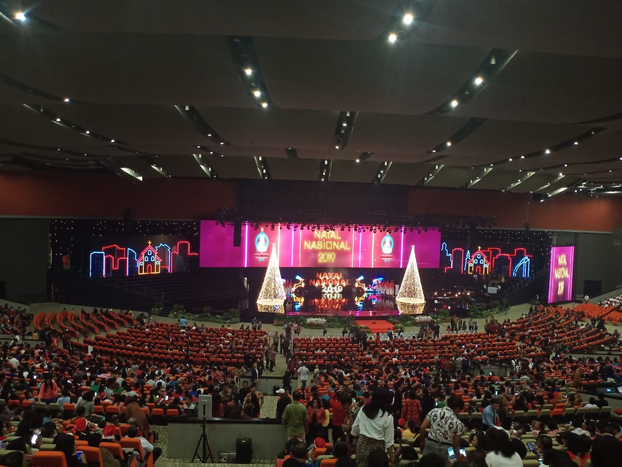 Hujan yang turun sejak siang hari tak surutkan semangat umat dan jemaat serta tamu undangan hadir dari berbagai penjuru Jabodetabek. Mendungnya langit tak hentikan sukacita yang melingkupi ruangan SICC dengan semarak suasana Natal penuh kasih, damai dan sukacita.