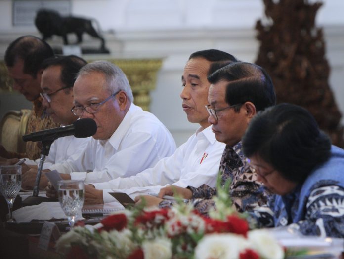 Presiden Joko Widodo memimpin rapat koordinasi antara Pemerintah pusat, provinsi, kabupaten, dan kota terkait penanganan banjir di Istana Merdeka, pada Rabu, 8 Januari 2020. FOTO: VIBIZMEDIA.COM|MARULI SINAMBELA