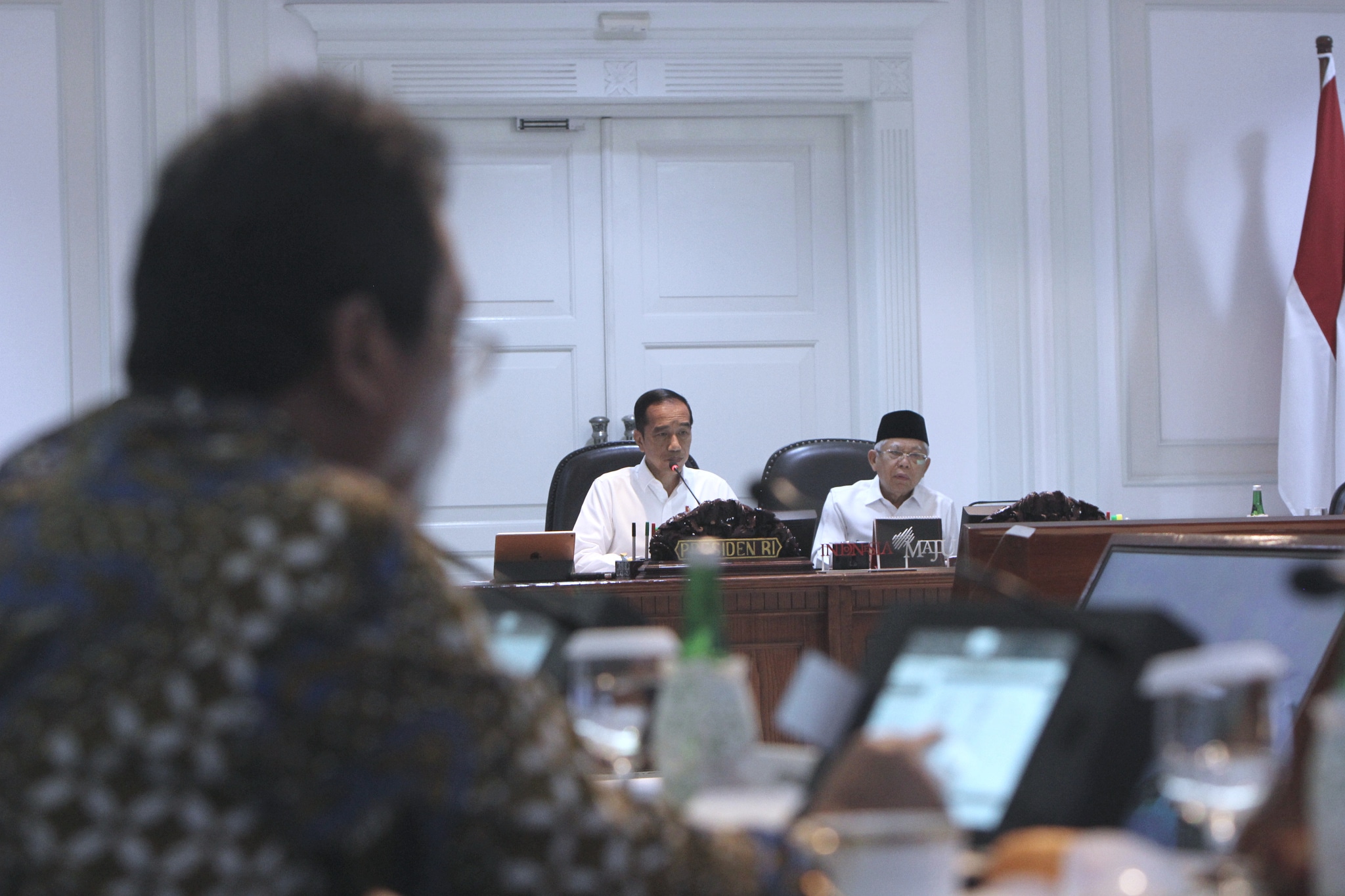 Presiden Joko Widodo memimpin rapat terbatas membahas kembali penyusunan Rancangan Undang-Undang (RUU) Omnibus Law bersama jajarannya di Kantor Presiden, Jakarta, pada Rabu, 15 Januari 2020. FOTO: VIBIZMEDIA.COM|MARULI SINAMBELA