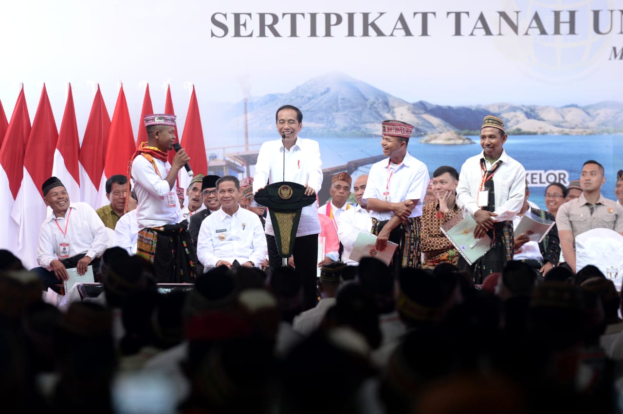 (Vibizmedia-Nasional) Presiden Joko Widodo menyerahkan 2.500 sertifikat hak atas tanah untuk rakyat digelar di Kantor Bupati Manggarai Barat, Kecamatan Komodo, Kabupaten Manggarai Barat, Provinsi Nusa Tenggara Timur (NTT) dalam kunjungan kerjanya di hari ketiga, pada Selasa, 21 Januari 2020.