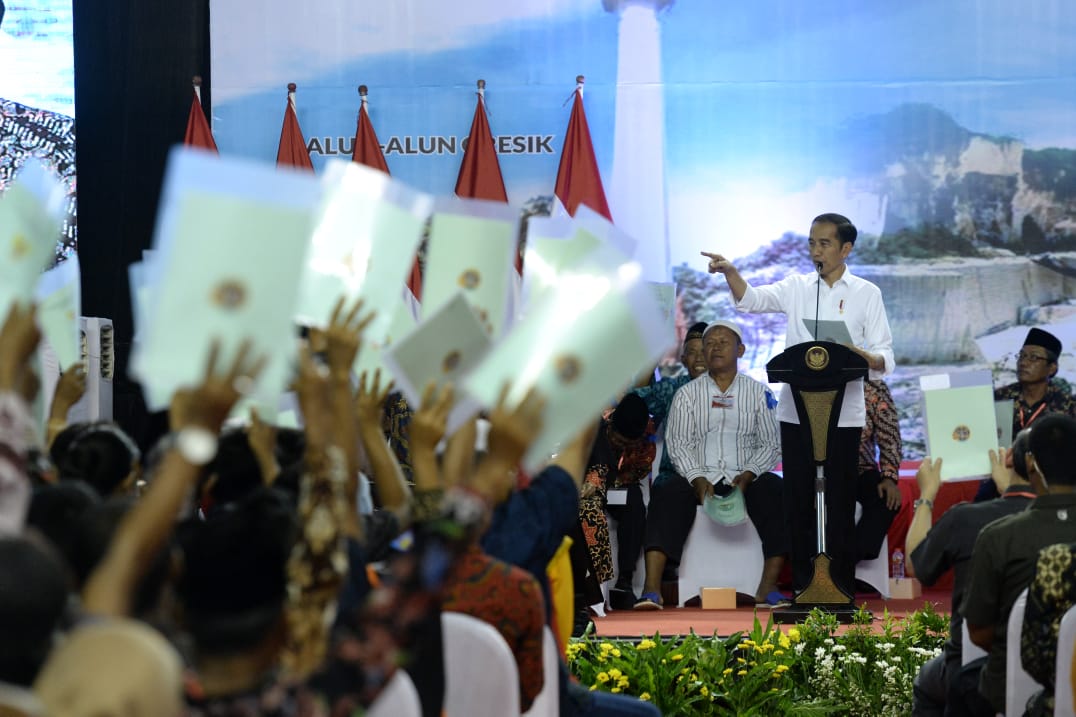 “Ada yang dari Bangkalan, ada yang dari Sidoarjo, ada yang dari Gresik, ada yang dari Surabaya,” jelas Presiden merinci asal penerima sertifikat.