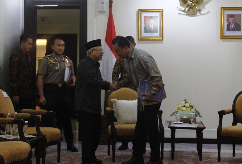 (Vibizmedia – Jakarta) Wakil Presiden Republik Indonesia, Prof. Dr. (H.C.) K.H. Ma’ruf Amin pada hari selasa (28/01/2020) menerima kunjungan dari Founder Foreign Policy of Community of Indonesia Dino Patti Djalal yang juga merupakan penginisiasi program 1000 Abrahamic Circles, menjelaskan program ‘The 1000 Abrahamic Circles, yaitu program pengalaman antar-iman yang melibatkan tiga pemuka agama di antaranya Islam, Kristen dan Yahudi dari berbagai negara. Selain itu hadir Prof. Dr. Frans Magnis Suseno, Prof. Dr. H. Nasaruddin Umar, Rosa Rai Djalal, Muhammad Abdullah Syukri S.IP MA (Pondok Pesantren Buntet, Cirebon, anggota Abraham’s Smile), K.H Muhammad Nur Hayid (Pesantren Al Anwar, Ploso, Pacitan, Jawa Timur, anggota Abraham’s Peace), Oji Fahruroji (Pesantren Peradaban Dunia Jagat ‘Arsy, Tangerang Selatan, Anggota Genesis).