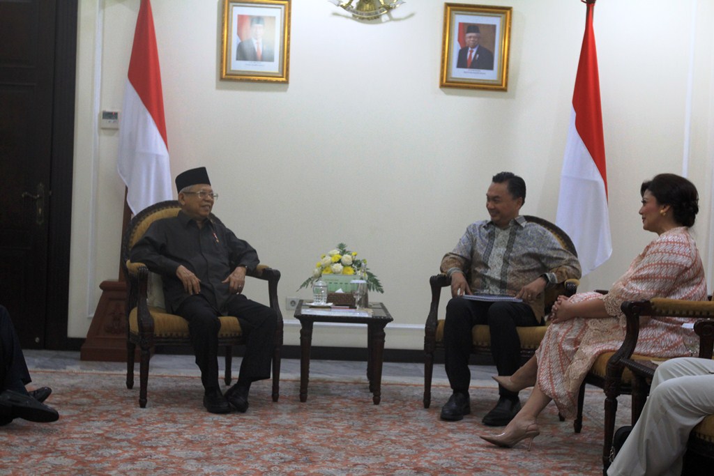 (Vibizmedia – Jakarta) Wakil Presiden Republik Indonesia, Prof. Dr. (H.C.) K.H. Ma’ruf Amin pada hari selasa (28/01/2020) menerima kunjungan dari Founder Foreign Policy of Community of Indonesia Dino Patti Djalal yang juga merupakan penginisiasi program 1000 Abrahamic Circles, menjelaskan program ‘The 1000 Abrahamic Circles, yaitu program pengalaman antar-iman yang melibatkan tiga pemuka agama di antaranya Islam, Kristen dan Yahudi dari berbagai negara. Selain itu hadir Prof. Dr. Frans Magnis Suseno, Prof. Dr. H. Nasaruddin Umar, Rosa Rai Djalal, Muhammad Abdullah Syukri S.IP MA (Pondok Pesantren Buntet, Cirebon, anggota Abraham’s Smile), K.H Muhammad Nur Hayid (Pesantren Al Anwar, Ploso, Pacitan, Jawa Timur, anggota Abraham’s Peace), Oji Fahruroji (Pesantren Peradaban Dunia Jagat ‘Arsy, Tangerang Selatan, Anggota Genesis).