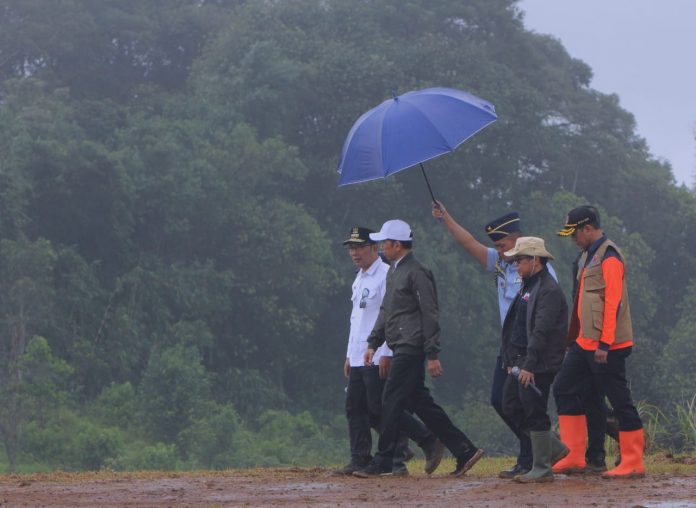 Jokowi meninjau lahan penanaman vetiver di desa Harkat Jaya  (Foto: Maruli Sinambela/Vibizmedia)