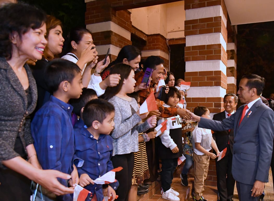 Setibanya di hotel, ratusan warga negara Indonesia (WNI) yang tinggal di Canberra dan sekitarnya menyambut kedatangan Presiden Jokowi dengan riuh hingga area luar hotel. Presiden pun menghampiri mereka untuk menyapa dan melayani permintaan swafoto.