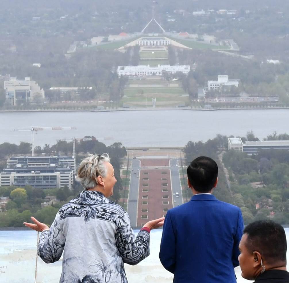 Kota Canberra sendiri dibangun pada tahun 1913 dan memiliki penduduk sekitar 400 ribu jiwa. Dari Mount Ainslie yang memiliki ketinggian 843 meter di atas permukaan laut, Presiden melihat tata kota Canberra sangat baik.