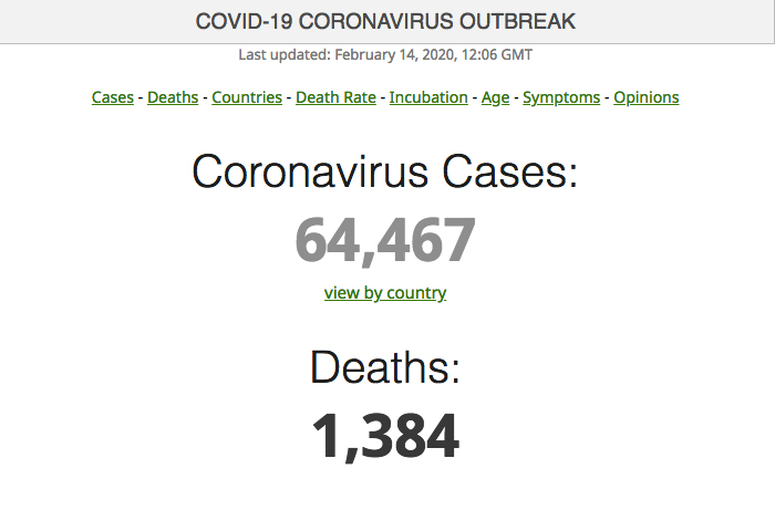 (Vibizmedia – Nasional) Hingga saat ini 14/2/20 pukul 20.00 WIB pasien meninggal akibat Virus Corona COVID-19 diberitakan mencapai 1384 meninggal. Dari pemberitaan sebelumnya terjadi pengurangan sejumlah 1,043 kasus dan 108 jumlah meninggal, karena pemerintah Cina mengakui adanya pengulangan penghitungan.