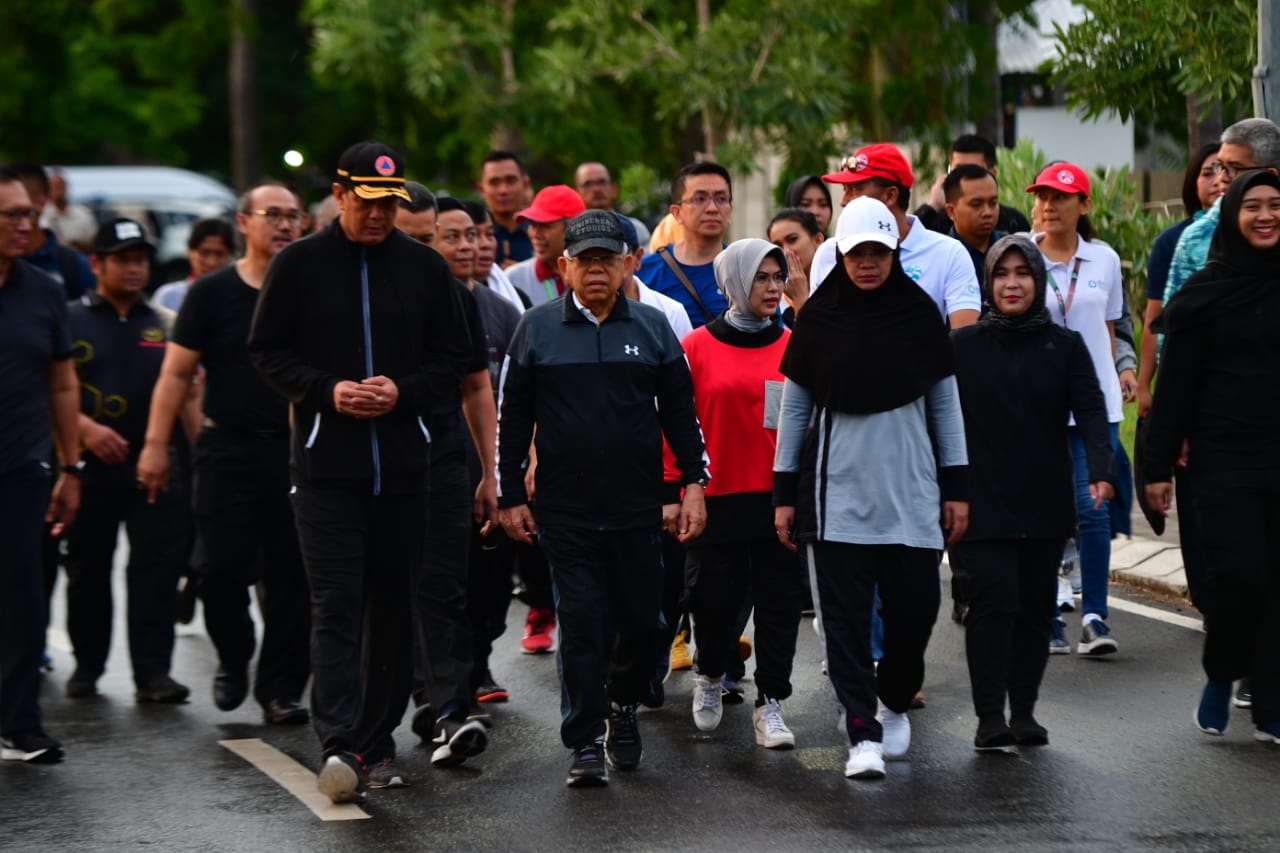 Didampingi Ibu Hj. Wury Ma’ruf Amin, Wapres berjalan sepanjang 3,8 km dengan durasi sekitar satu jam dua puluh menit.