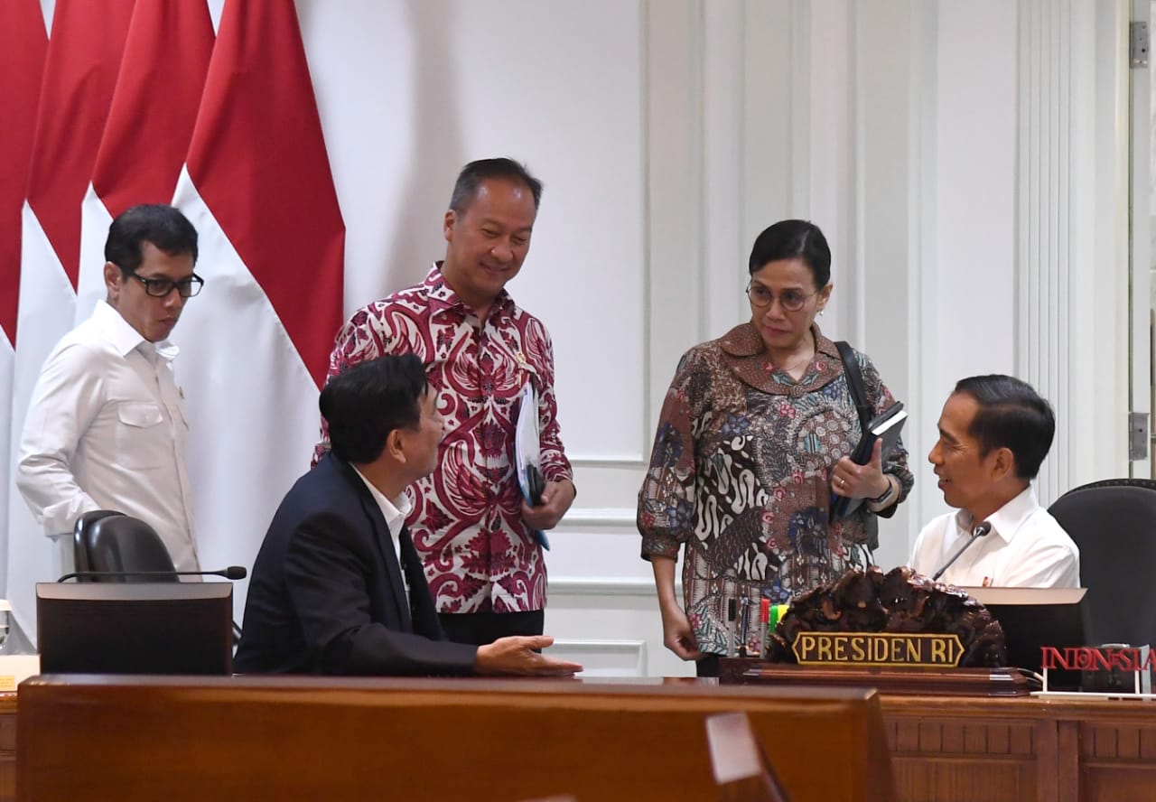 (Vibizmedia-Nasional) Presiden Joko Widodo membahas tindak lanjut terhadap sejumlah langkah kebijakan yang telah diputuskan untuk menghadapi dampak virus korona terhadap perekonomian nasional bersama dengan jajaran terkait di Kantor Presiden, Jakarta, pada Selasa, 25 Februari 2020.