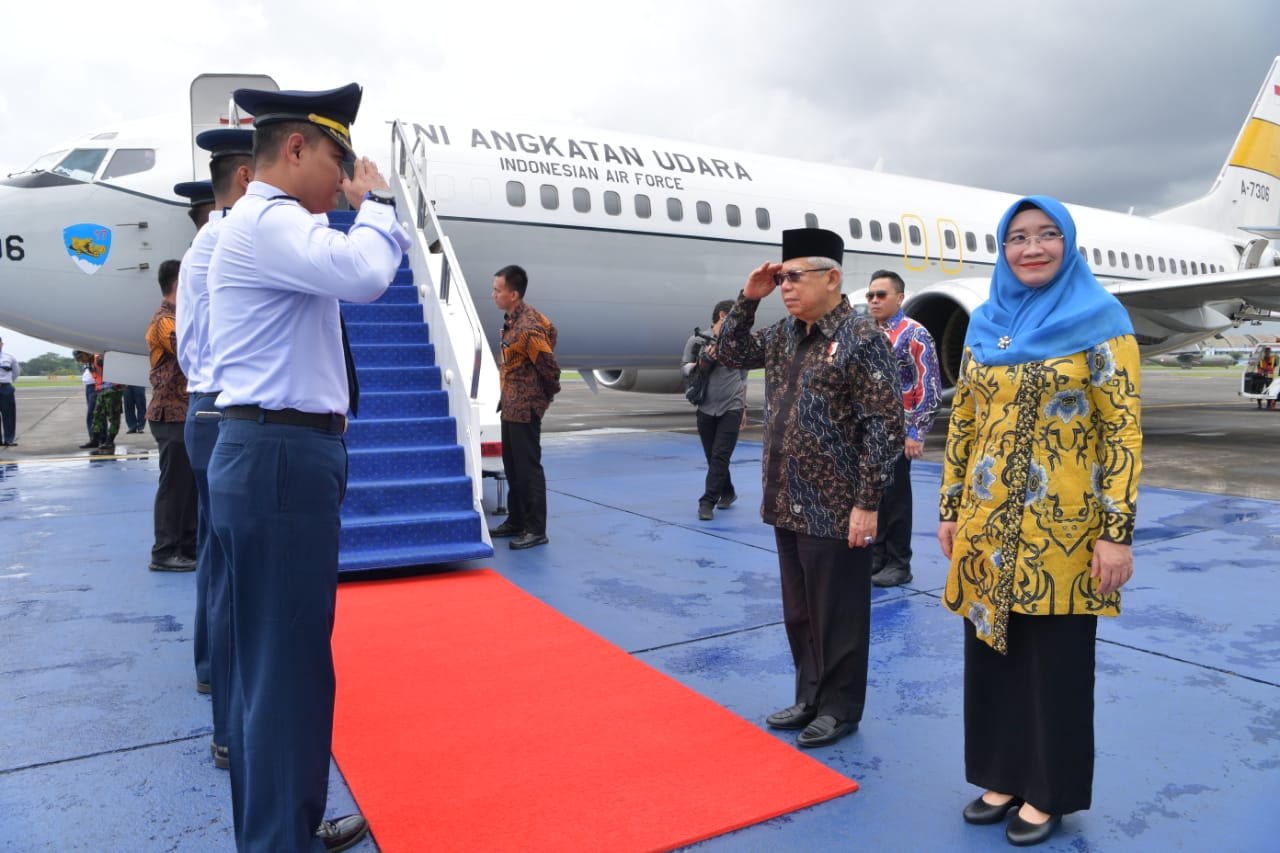 Wapres didampingi Ibu Hj. Wury Ma’ruf Amin dari Pangkalan TNI AU Halim Perdanakusuma Jakarta menggunakan Pesawat Khusus Kepresidenan Boeing 737-400 TNI AU lepas landas menuju  Kepulauan Bangka Belitung pada pukul 13.00 WIB. Setelah menempuh penerbangan satu jam, Wapres dan rombongan diperkirakan tiba di Bandar Udara Depati Amir, Kabupaten Bangka Tengah pada pukul 14.00 WIB.