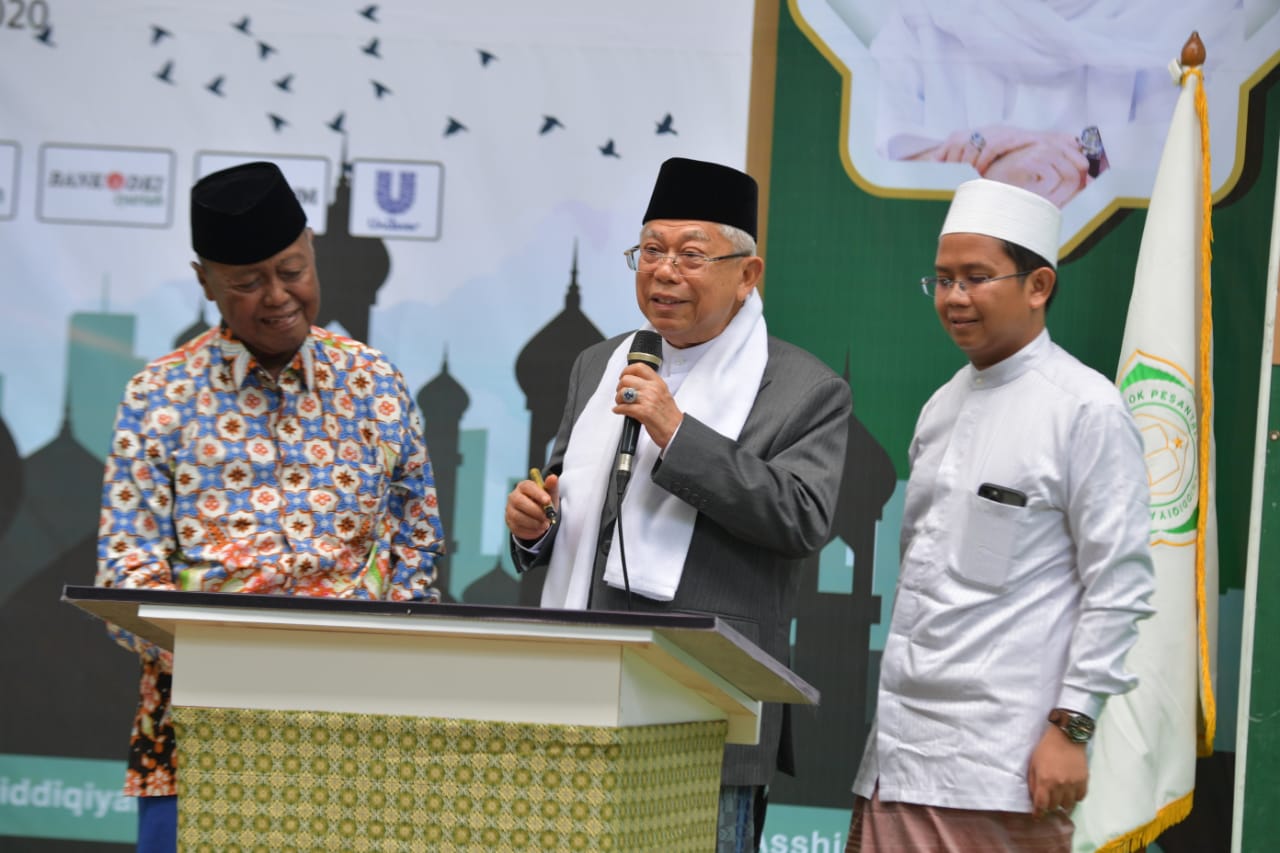 Demikian disampaikan Wakil Presiden (Wapre) K.H. Ma’ruf Amin saat memberikan sambutan dalam rangka menghadiri acara Tabligh Akbar dan Haul Pondok Pesantren Asshidiqiyah ke 35, di Pondok Pesantren Asshidiqiyah, Jakarta Barat, Sabtu (7/3/2020).