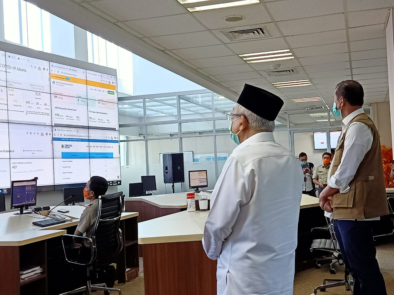 Wakil Presiden, K.H. Ma'ruf Amin bersama ketua Gugus Tugas Percepatan Penanganan Covid-19 di kantor BNPB (23/3) (Foto: ASDEP KIP SETWAPRES)