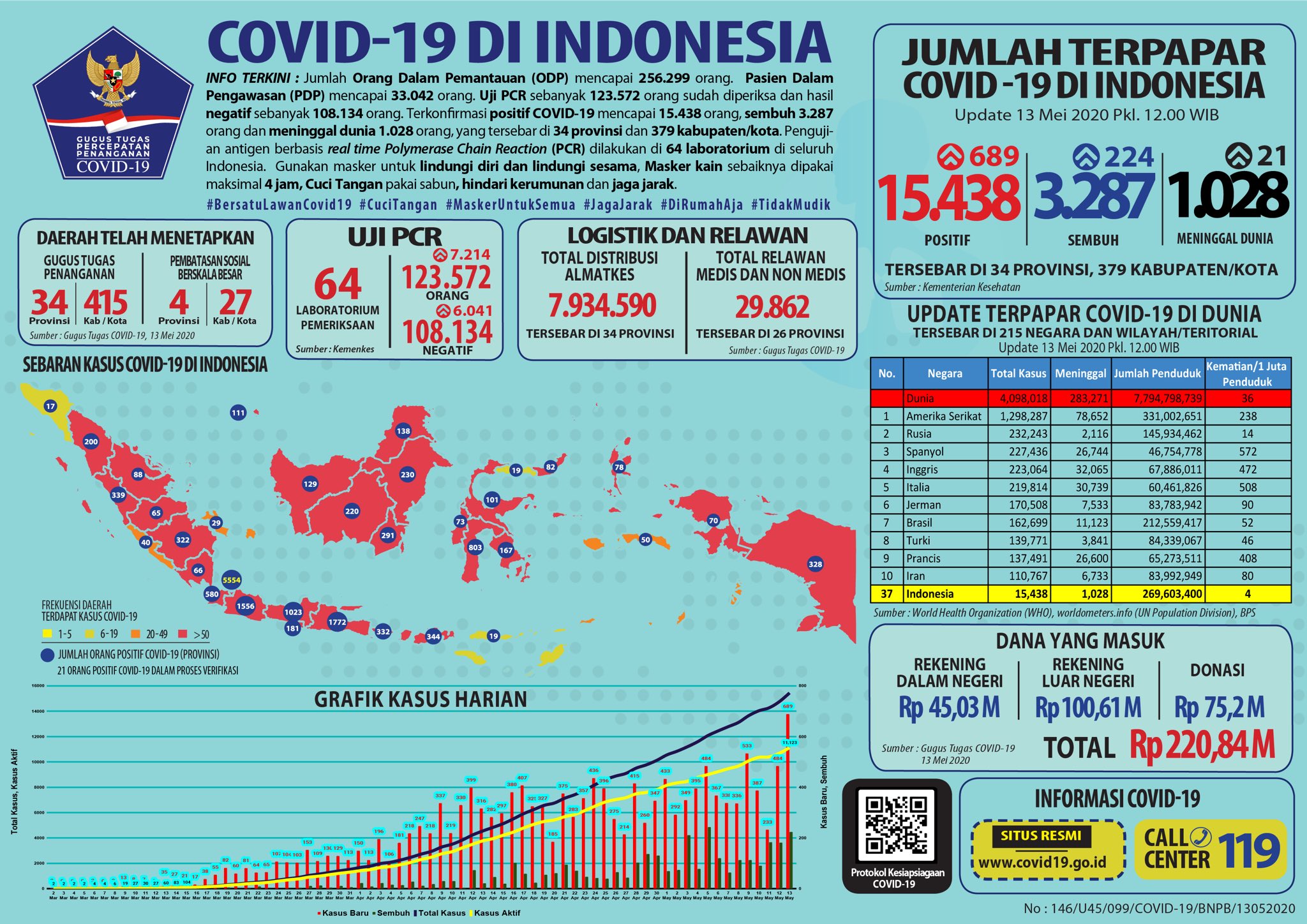 Hingga tanggal 13 Mei 2020 maka berikut akumulatif daftar jumlah penderita positif di seluruh provinsi :