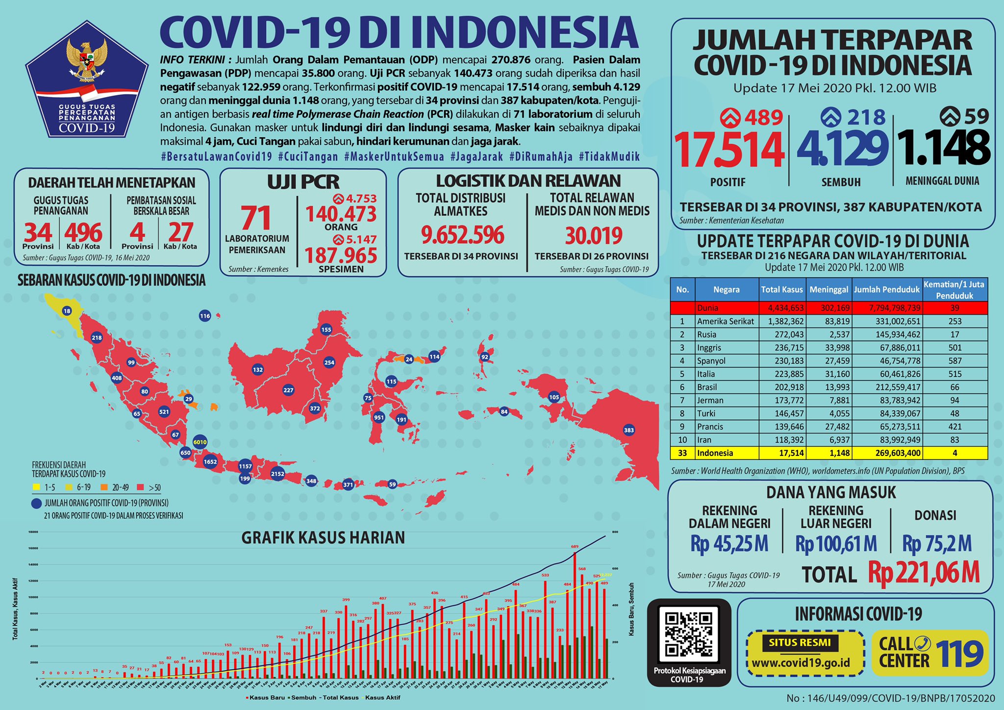 Breaking News Covid-19 di Indonesia 17 Mei 2020: Bertambah 489, Total Positif Kini 17.514