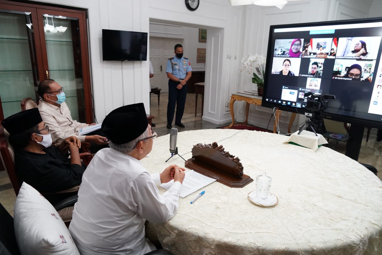 Wapres K.H. Ma’ruf Amin ketika memberikan keterangan pers kepada media melalui teleconference di kediaman dinas Wapres, Jalan Diponegoro Nomor 2, Jakarta Pusat, Senin sore (08/06/2020). (Foto: KIP SETWAPRES)