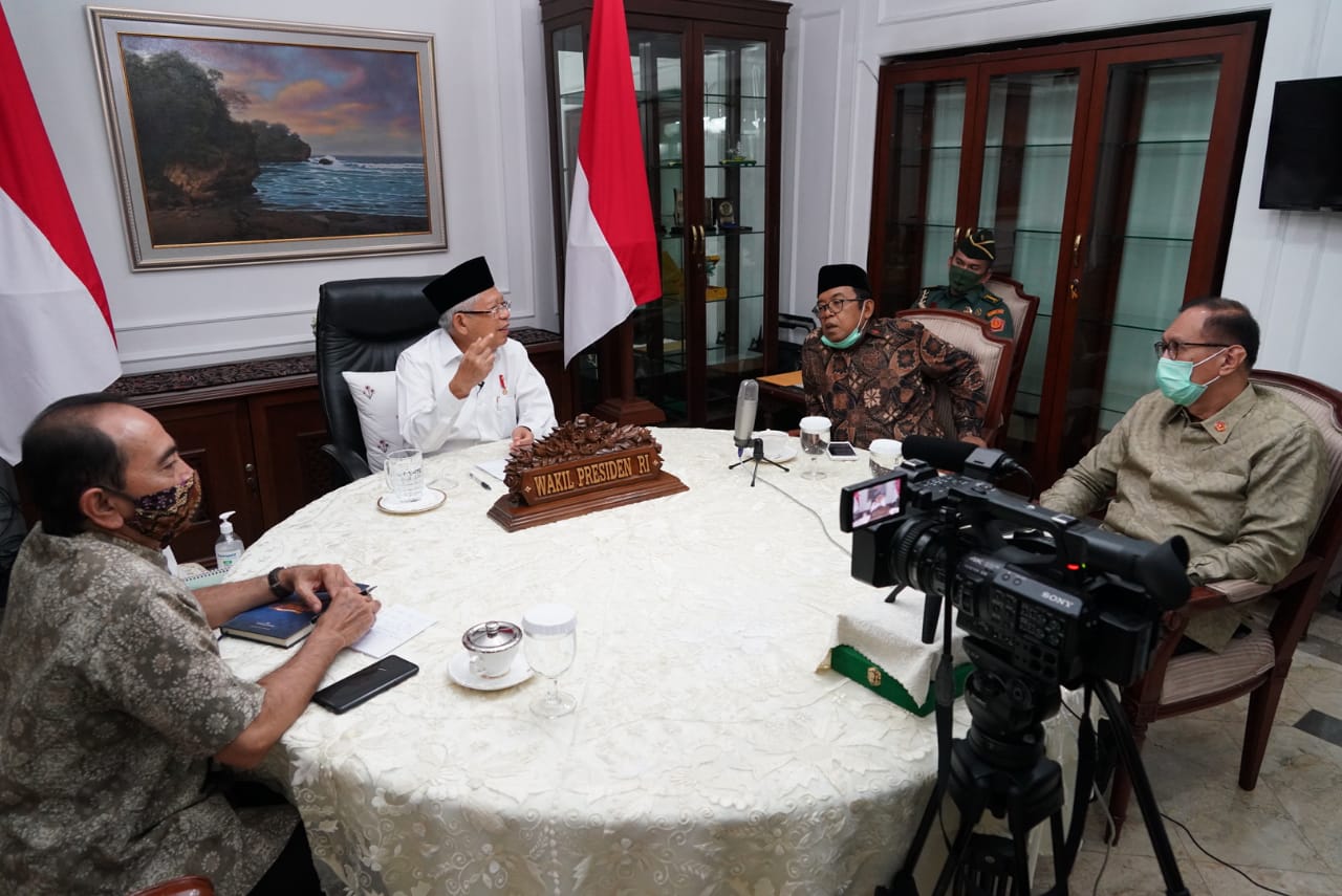 Wapres K.H. Maruf Amin ketika memimpin rapat terkait penerapan protokol kesehatan di sekolah berasrama melalui video conference di Kediaman dinas Wapres, Jalan Diponegoro Nomor 2, Jakarta Pusat, Rabu (10/06/2020). (Foto : KIP SETWAPRES)