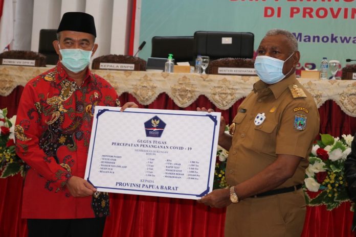 (Vibizmedia-Nasional) Menteri Koordinator Bidang Pembangunan Manusia dan Kebudayaan Muhadjir Effendy selaku Ketua Dewan Pengarah Gugus Tugas (GT) Penanganan Covid-19 bersama rombongan mengunjungi Papua Barat untuk meninjau langsung penyaluran bantuan sosial (bansos) dari pusat yang belum tersalurkan 100 persen kepada masyarakat terdampak yang membutuhkan, dikarenakan terkendala akses dan transportasi.