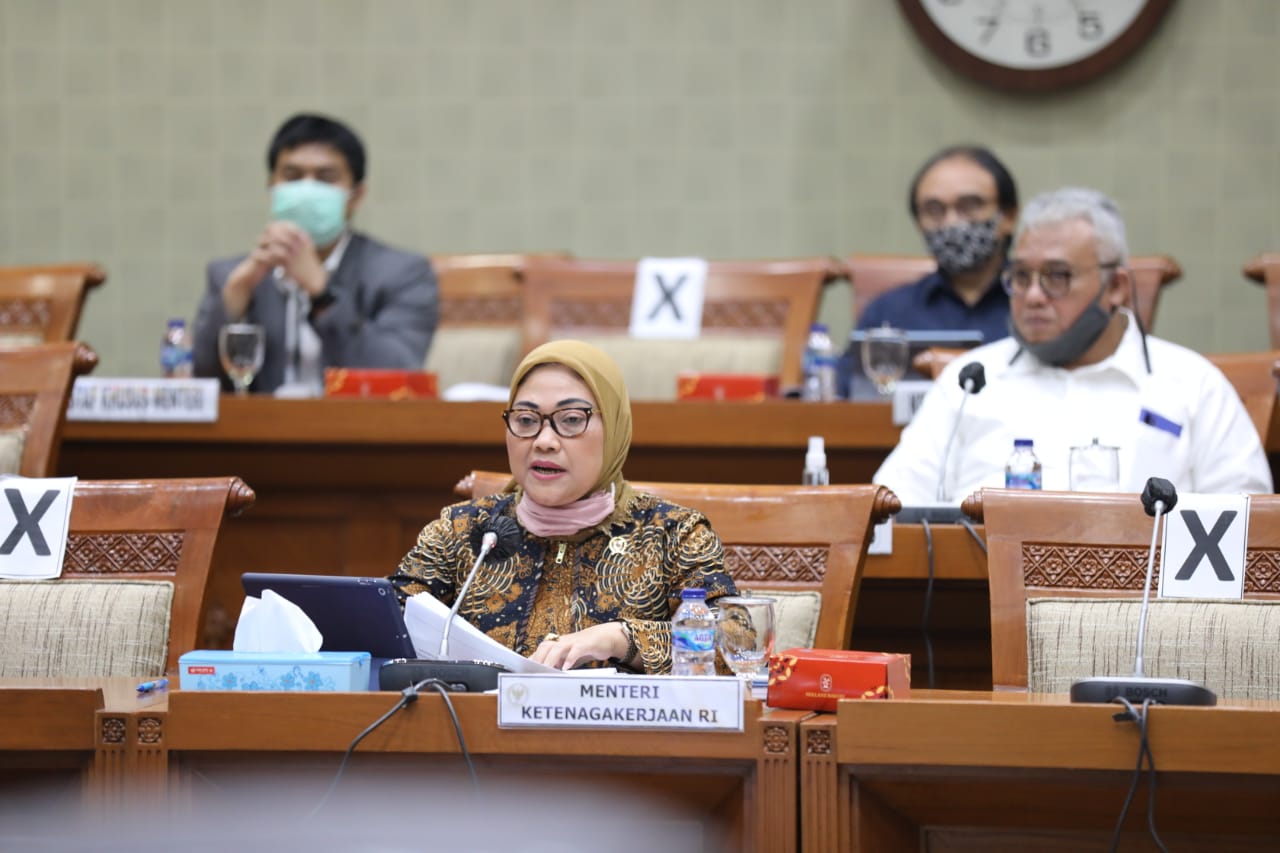 Rapat kerja Menteri Ketenagakerjaan Ida Fauziyah dengan Komisi IX DPR di Komplek Parlemen, Senayan, Jakarta, Rabu 8 Juli 2020. FOTO: KEMENAKER