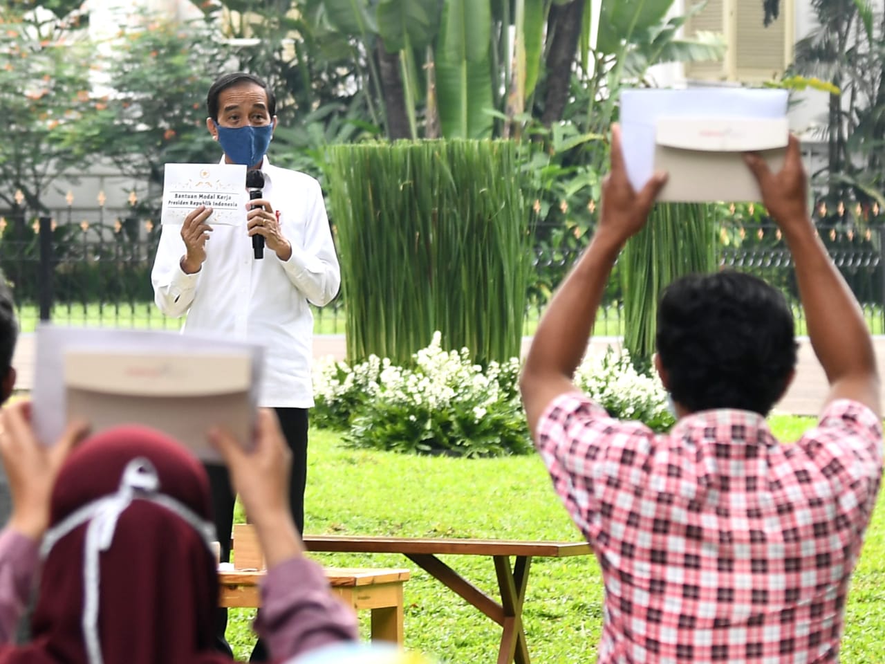 Sebanyak 63 penerima bantuan modal kerja dari Kota dan Kabupaten Bogor hadir dan menerima secara langsung bantuan tersebut dalam dua sesi terpisah sebagai upaya mematuhi protokol kesehatan dengan menjaga jarak dan mencegah kerumunan yang terlalu banyak. Para penerima bantuan tersebut juga telah melalui proses pemeriksaan kesehatan sebelum memasuki kompleks Istana Kepresidenan.
