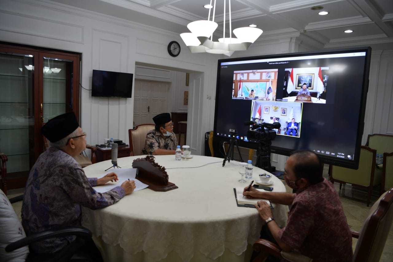 Wapres K.H. Ma’ruf Amin saat menerima Ketua Dewan Perwakialn Daerah Republik Indonesia (DPD RI), A. A. Lanyalla Mahmud Mattalitti melalui video conference di kediaman dinas Wapres, Jalan Diponegoro Nomor 2, Jakarta Pusat, Rabu (5/8/2020). Foto : KIP SETWAPRES